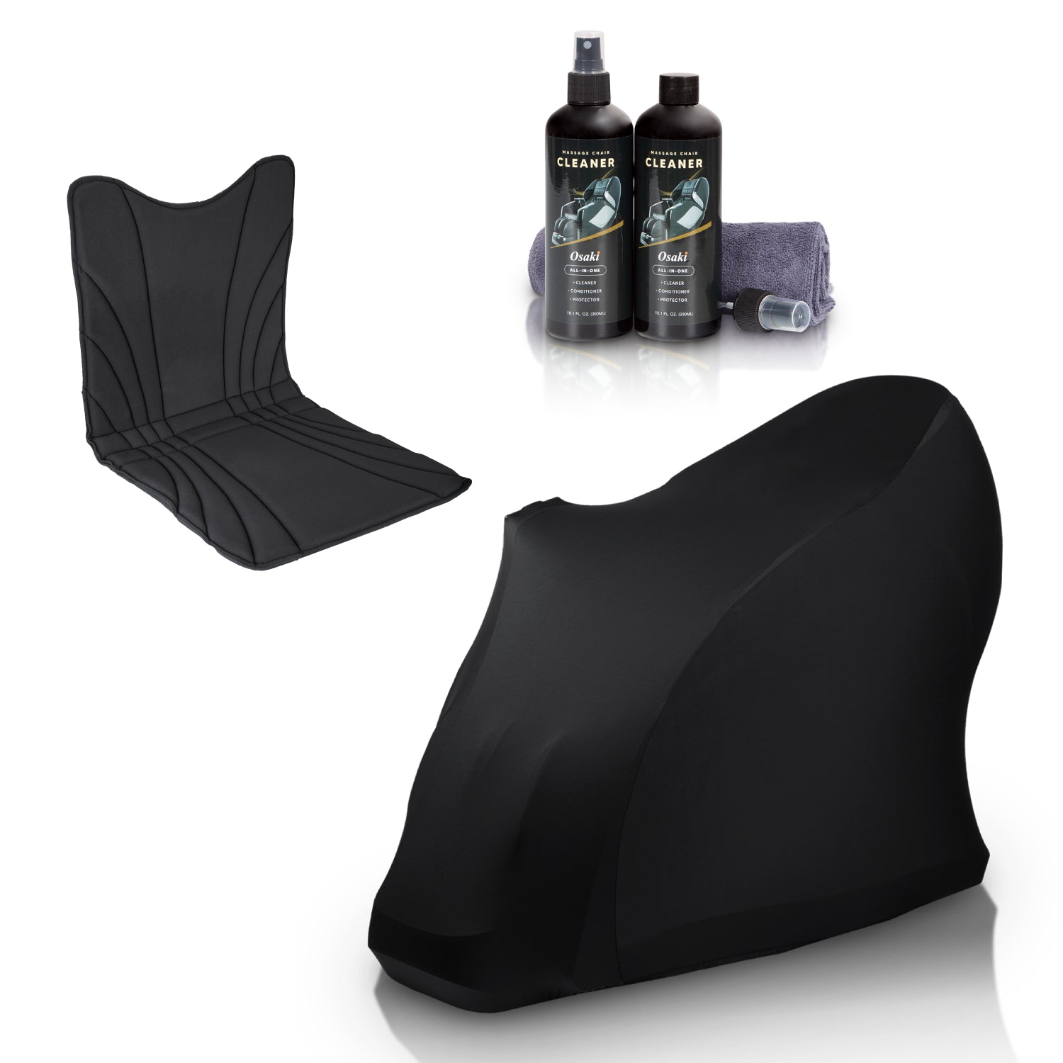 All in One package including cleaning kit, chair cover and back pad for massage chair